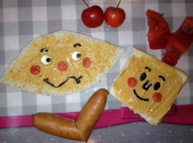 今回はサンドイッチを使ってカレーパンマンとしょくぱんまんをつくりました(〃゚ー゚)